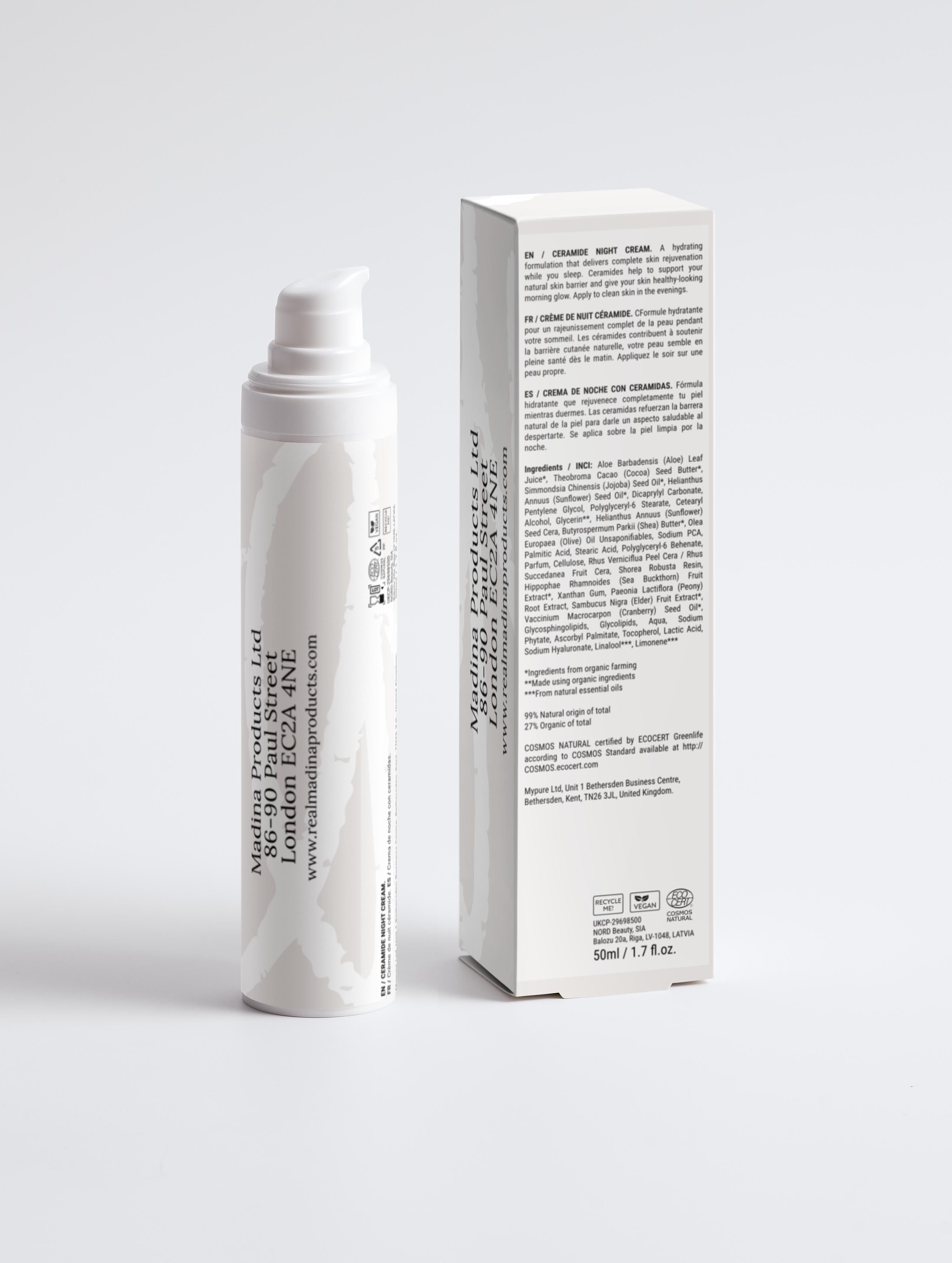 Product description: The Ceramide Hydrating Night Cream is thoughtfully formulated with ingredients that work their magic overnight, promoting skin renewal and a radiant glow. Hydrating formulation glides effortlessly onto your skin and delivers complete skin rejuvenation while you sleep. Ceramides help to support natural skin barrier and give your skin healthy-looking skin in the morning. Apply to clean skin in the evenings.